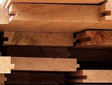 Solid wood flooring milled from reclaimed barn beams and timbers. Tongue-and-groove sides, end matched, stress relief back.