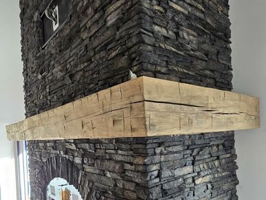 Hand‑hewn and Rough Sawn reclaimed mantels.